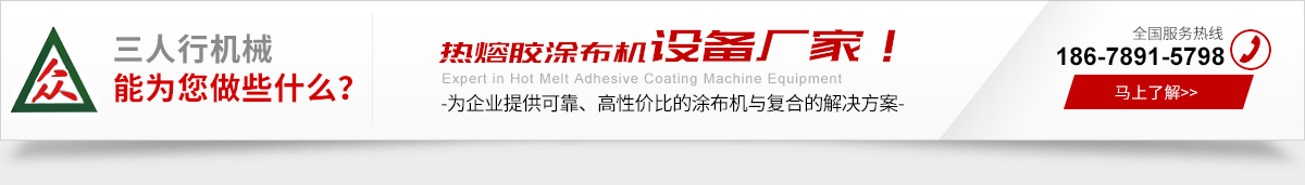 青島三人行機(jī)械有限公司是一家生產(chǎn)熱熔膠涂布機(jī)、不干膠涂布機(jī)、熱熔膠膜涂布機(jī)、膠帶涂布機(jī)、熱熔膠復(fù)合機(jī)。我們團(tuán)隊擁有十余年熱熔膠涂布與復(fù)合的工藝經(jīng)驗(yàn),無論是低粘度的熱熔壓敏膠(HM-PSA),還是高粘度的熱塑性材料(EVA、PU、PA、EEA等),我們能為您提供涂布與復(fù)合的合理解決方案。